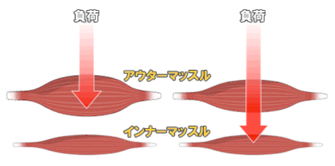 そもそも筋肉は、アウターマッスルとインナーマッスルに分類します。アウターマッスルのエネルギー源は主に糖質になりますが、