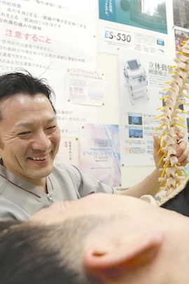私自身、長年煩った腰の痛みを、接骨院で治していただいたという経験があります。そのとき、治療の素晴らしさを知り、柔道整復師免許を取得しました。そしてより治療の可能性をより広げるために、 鍼灸マッサージ師の資格を取得し整形外科、スポーツトレーナー、機能回復センターなどで20年間、臨床経験を積んで参りました。結果、身につけた、どんな痛みにも向き合う技術で、地域の皆様の治療を行っています。