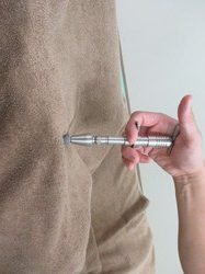 注射器の様な器具で、物理的な刺激で頚椎等を矯正します。