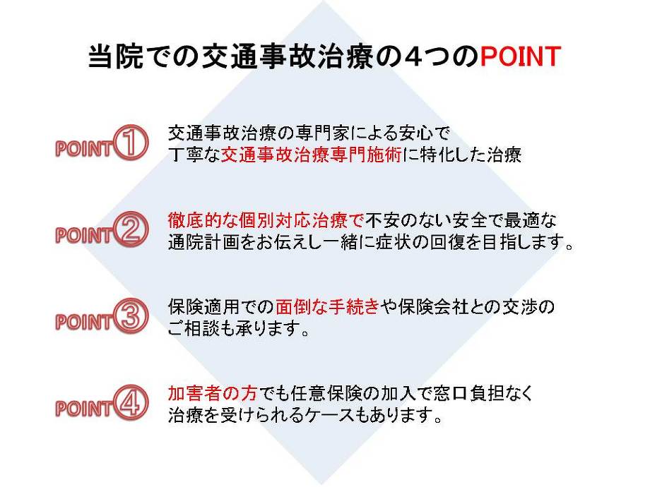 当院での交通事故治療の4つのPOINT